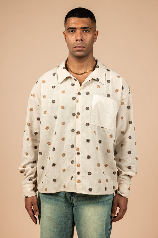 Embroidered Boxy Fit Linen Shirt